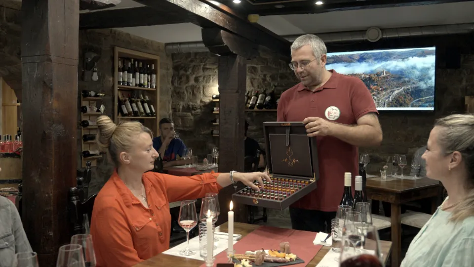 Презентатор ще Ви разкаже за произхода на вината и ще Ви даде съвети как да дегустирате вино като професионалисти. Предвидено е и дегустационно количество кетъринг с колбаси, кашкавал, сирене на регионални производители. След приключване на винената дегустация на Ваше разположение са професионални комплекти с 88 аромата, срещани в различните вина, чрез които можете да проверите сетивните Ви умения.
