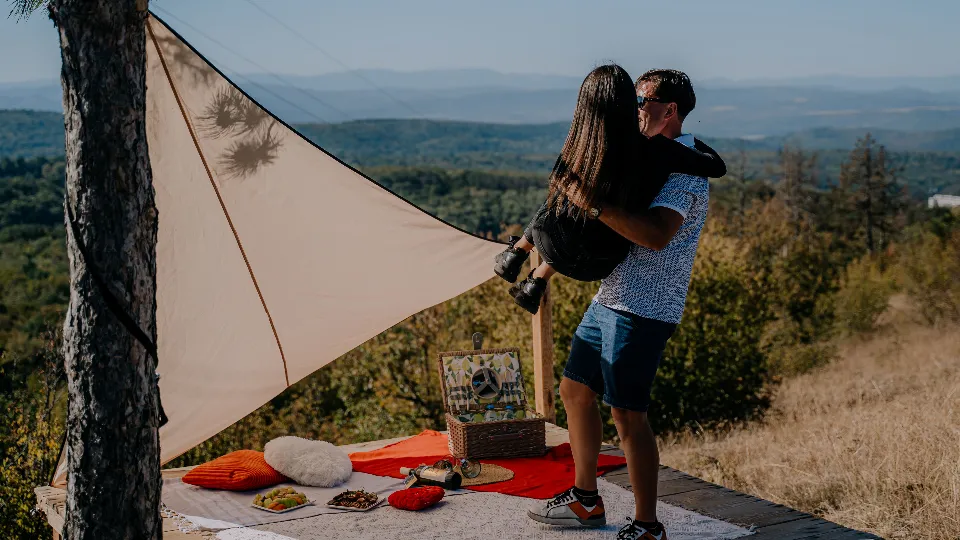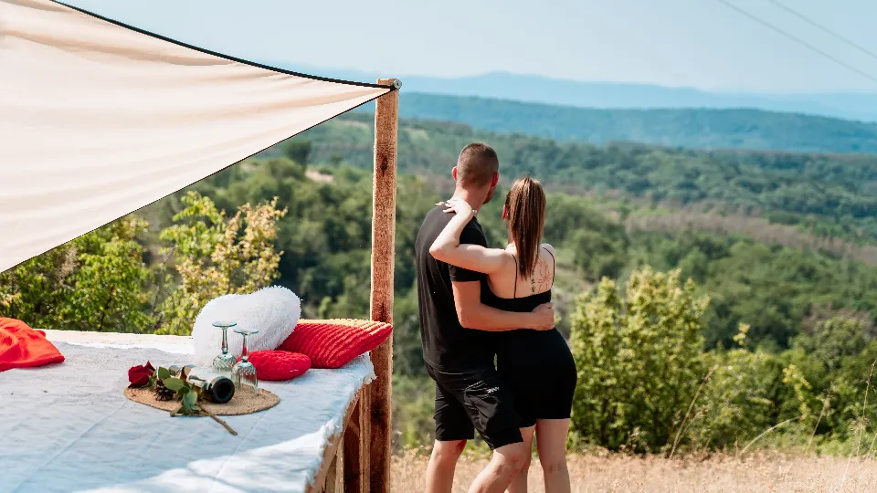Роматичен пикник на специално изградена беседка с панормана гледка към природата