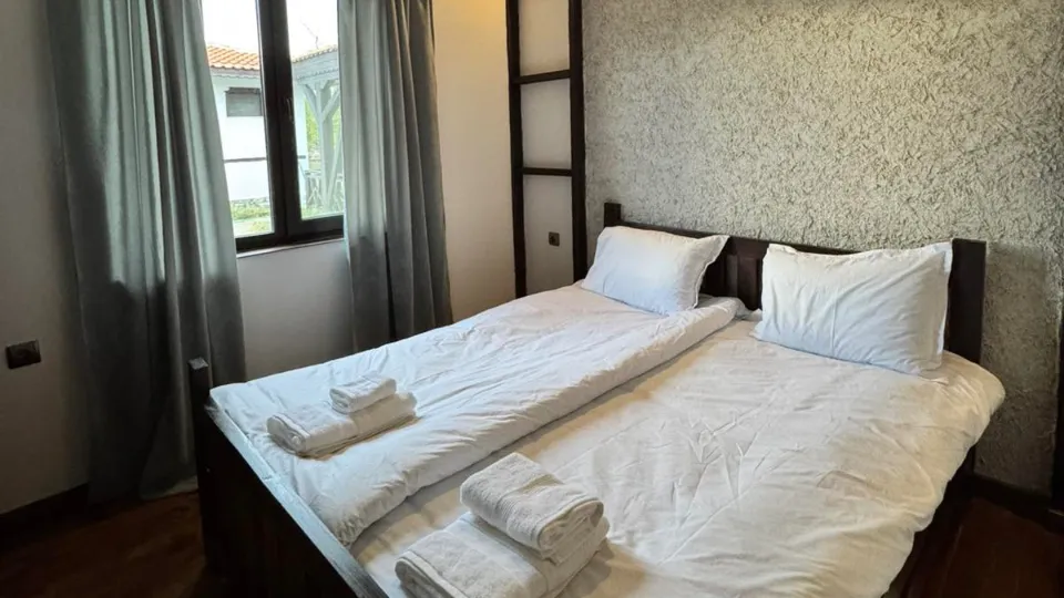 Настанявате се в една от трите ни къщи – Листолида, Канатица или Орелия – всяка от които предлага уютно пространство за до четирима гости. В къщата има една просторна спалня за двама и голям разтегателен диван във всекидневната, подходящ за още двама, което я прави идеална както за семейства, така и за приятелски компании. Интериорът е топъл и стилен, с просторна всекидневна и камина, която създава перфектната атмосфера за спокойни вечери, разговори и пълноценен релакс. Комфортът е осигурен през всеки сезон, а сънят Ви ще бъде дълбок и възстановяващ благодарение на висококачествените матраци и внимателно подбраните детайли.