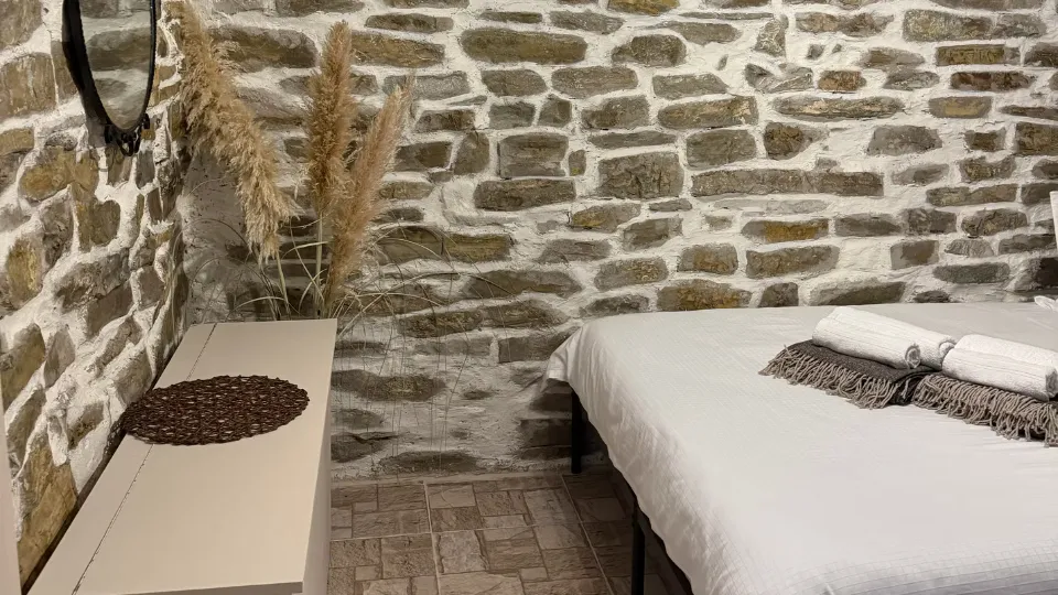 Тук всяка стая, всеки детайл и всеки предмет носи разказ – вдъхновен от италианския дух и старите семейни домове, които пазят топлина и характер. Ще усетите тази атмосфера още с първата стъпка вътре: светлината, която пада меко по каменните стени, дървените мебели с душа, ароматът на чисто пране, спомените от миналото, вплетени в модерния уют. А когато излезете навън, дворът ще ви посрещне като кадър от филм – просторен, зелен, ароматен, с кът за огън, който нощем озарява мястото в златно сияние.