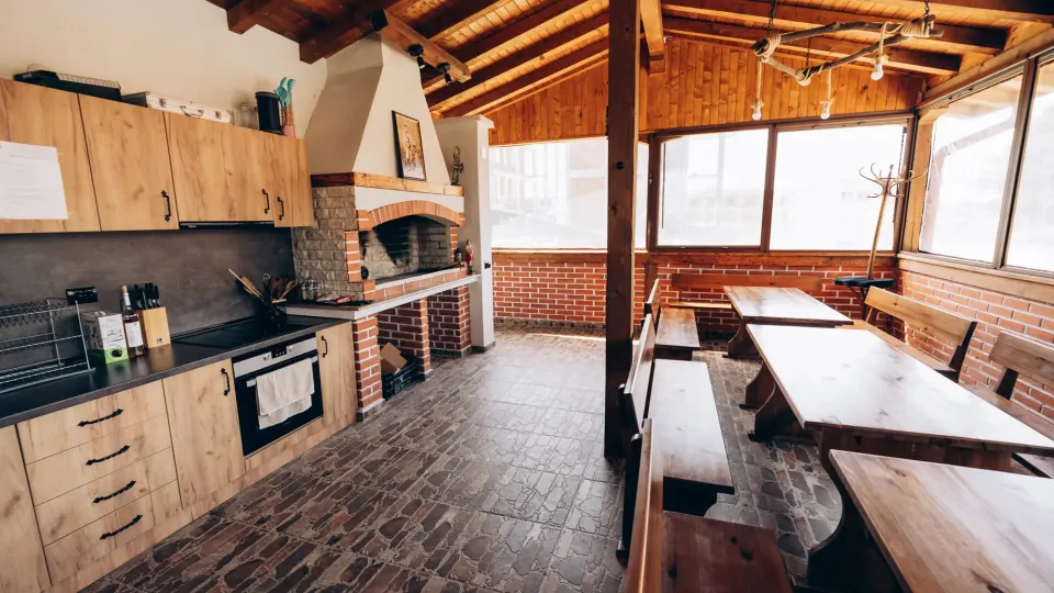 Комплексът разполага с разнообразни външни барбекюта, а храната може да бъде доставена по заявка от три различни ресторанта-партньори според предпочитанията на гостите. На разположение е и просторна механа с камина и напълно оборудвана кухня с капацитет до 36 души – перфектно пространство за семейни тържества, фирмени събития или празници в уютна атмосфера.