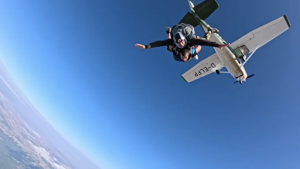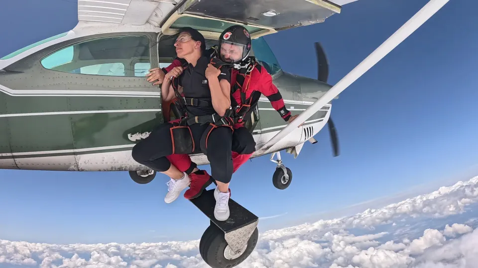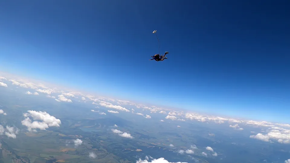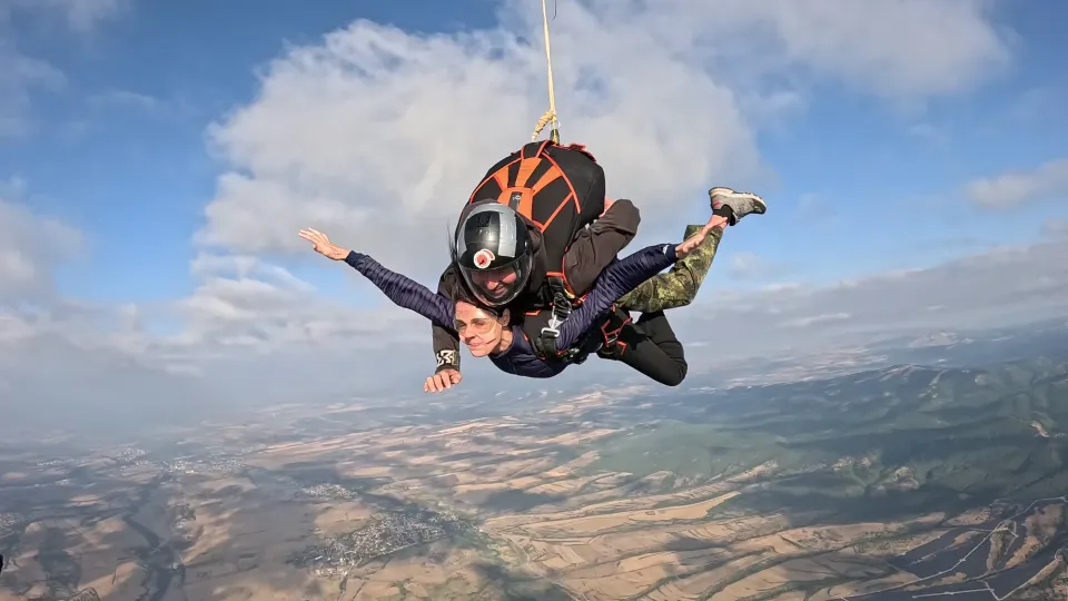 След подробен инструктаж се издигате със самолет все по-високо, докато земята под вас се смалява, а хоризонтът става безкраен. Вратата се отваря. Вятърът нахлува. Един поглед напред – и скачате. Свободното падане е сурова, чиста енергия. Сърцето бие силно, въздухът профучава край вас, а усещането за абсолютна свобода е толкова мощно, че оставя без думи. Това са секунди, които разтърсват, освобождават и остават завинаги в съзнанието ви.