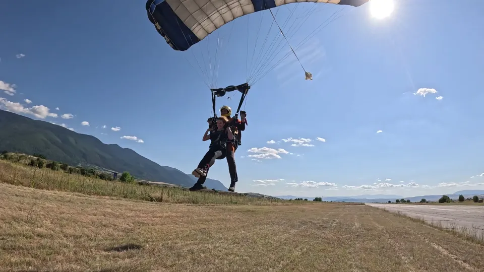 Парашутът се отваря и светът внезапно утихва. Настъпва плавен, величествен полет над Рила, над зелените склонове и красивия район на Сапарева баня. Гледките са спиращи дъха, въздухът е кристален, а вие се носите над всичко с широка усмивка и усещане, че сте победили гравитацията. Контрастът между дивия адреналин и спокойствието на полета създава емоция, която трудно може да се сравни с друго преживяване.