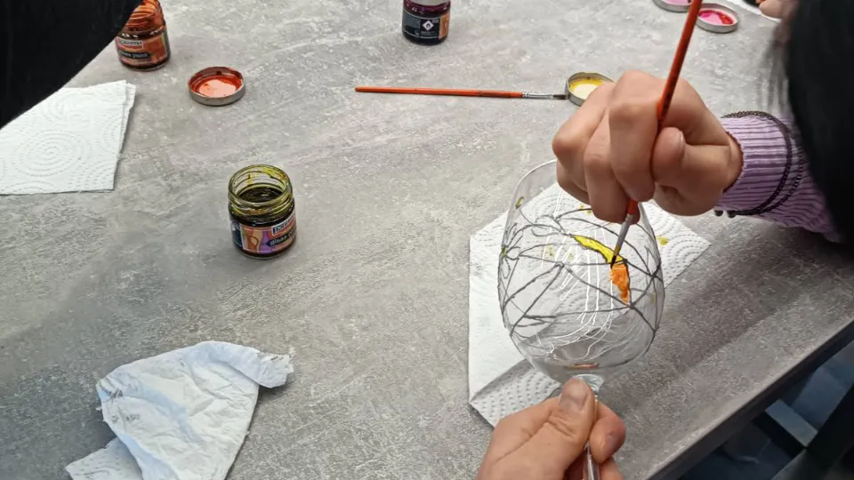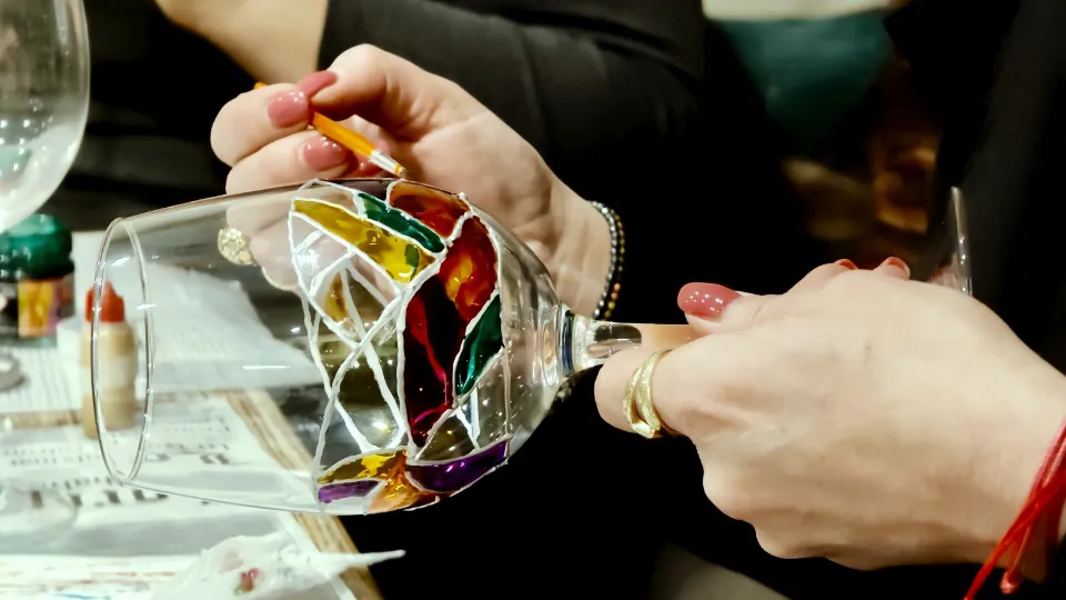 В уютната и вдъхновяваща атмосфера на Център за приложни изкуства и занаяти „Къщата“ ще се потопите в магията на рисуването върху стъкло – изкуство, което съчетава лекота, красота и творчество, а всяка ваша линия ще превърне обикновената чаша в уникално произведение. По време на работилницата ще създадете своя собствена чаша за вино, която ще носи личния отпечатък на вашето въображение и ще превърне всяка специална вечер в незабравимо изживяване.
