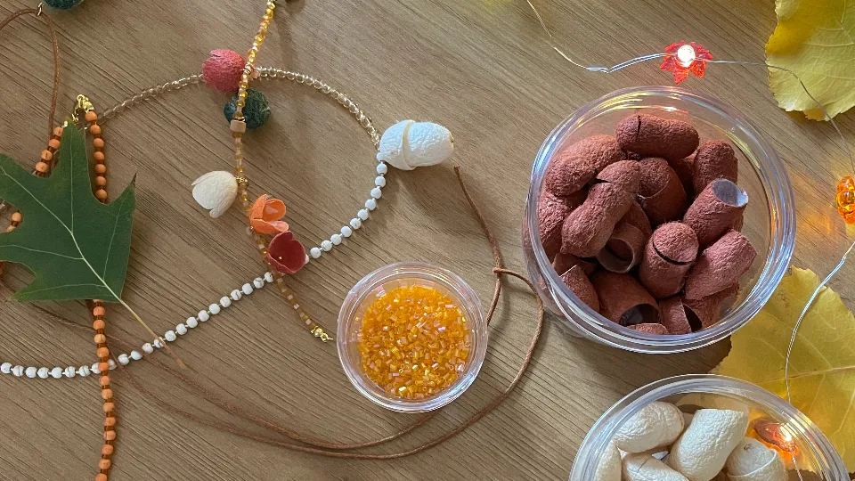 Изработка на бижу, картина или фигурка с коприна и естествени материали