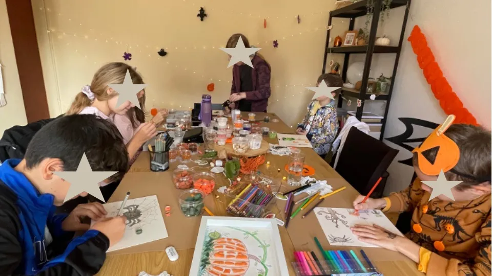 В края на творческото приключение децата се радват на здравословна почерпка с напитки, плодове и сладки изкушения. Завършваме с общо споделяне и снимка за спомен – защото тук не просто творим, а създаваме спомени и увереност.